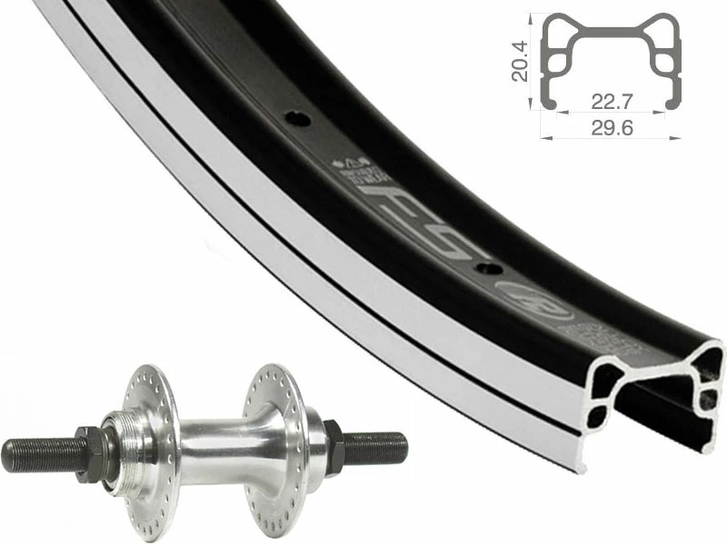 mit Alu-Felge Rodi FS23 schwarz 20 Zoll 23-406, mit abgeschliffener Bremsflanke seitlich, Felgeninnenbreite 23 mm, Felgengesamtbreite 30 mm, für alle Ventile,