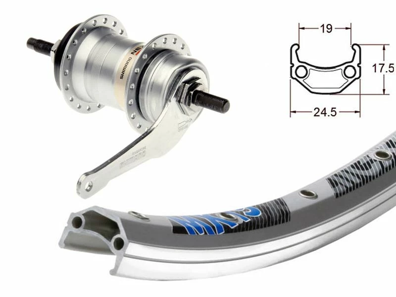 28 Zoll 19-622 EXAL MX19 Alu-Hohlkammerfelge silber mit silberner Felgenbremsflanke, Felgengesamtbreite 24.5 mm, für alle Ventile, 36 Loch geöst,