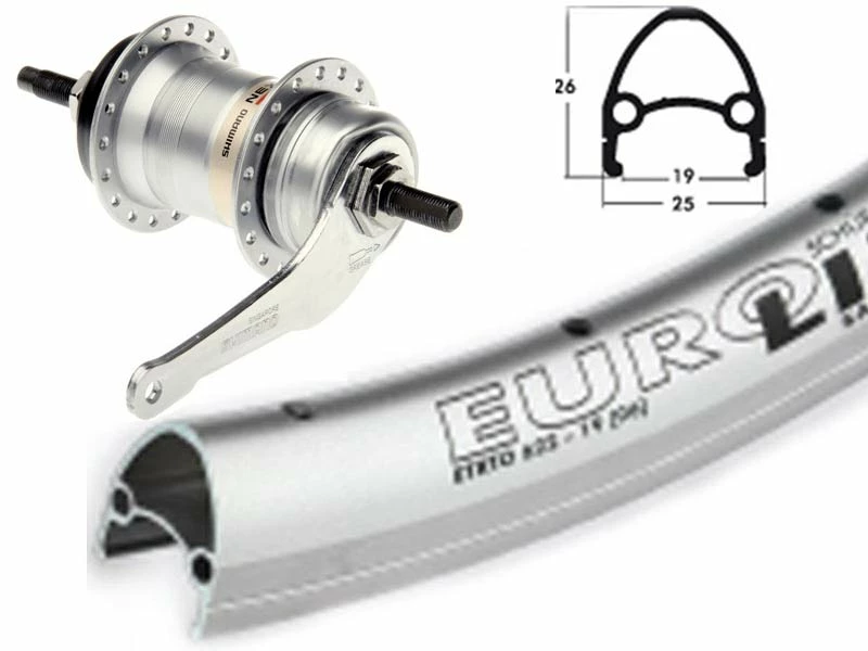 28 Zoll 19-622 Schürmann Euroline Alu-Hohlkammerfelge silber mit silberner Felgenbremsflanke, geöst, Felgengesamtbreite 25 mm, für alle Ventile, 36 Loch