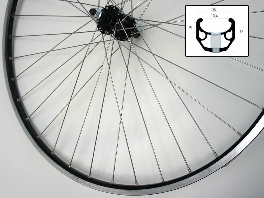 mit 36 silbernen Edelstahlspeichen (3-fach gekreuzt)