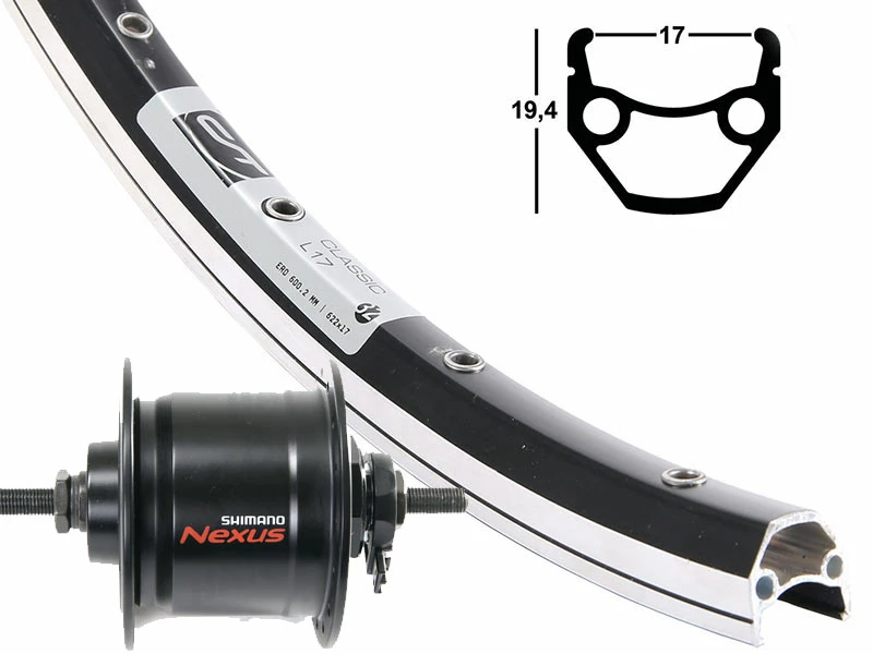 schmale Aluminium Hohlkammer-Felge 17-622 Contec Classic L17 schwarz mit silberner Bremsfläche, 36 Loch, für alle Ventile