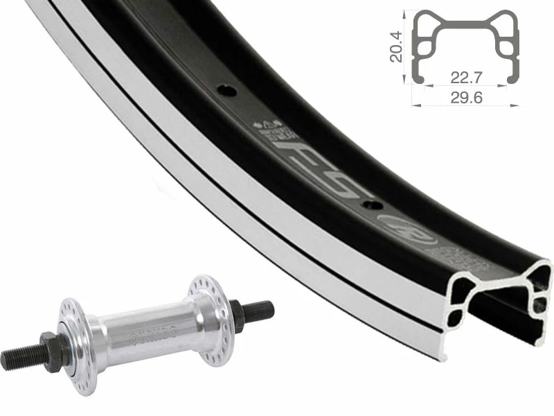 mit Alu-Felge Rodi FS23 schwarz 26 Zoll 23-559, mit abgeschliffener Bremsflanke seitlich, Felgeninnenbreite 23 mm, Felgengesamtbreite 30 mm, für alle Ventile,