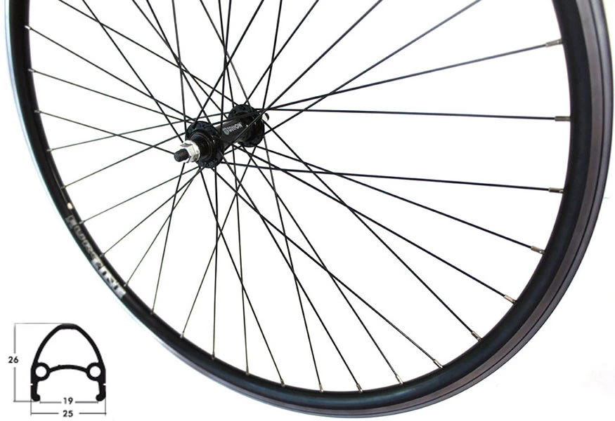 Nabe: Union Vorderradnabe Alu schwarz mit Vollachse und Muttern, Einbauweite 100 mm