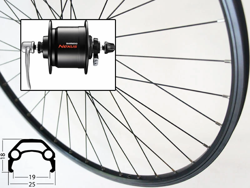 mit Shimano Nabendynamo Nexus DH-C3000 schwarz mit Hohlachse und Schnellspanner, mit Kabel-Stecker, Gabel-Einbaubreite 100 mm,