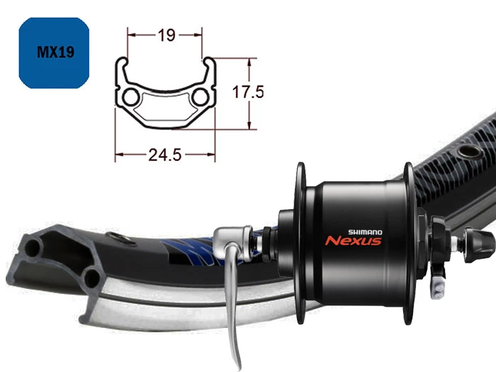 Felge: 28 Zoll (19-622) Exal MX19 Alu-Hohlkammerfelge schwarz-silber, 36 Speichenlöcher